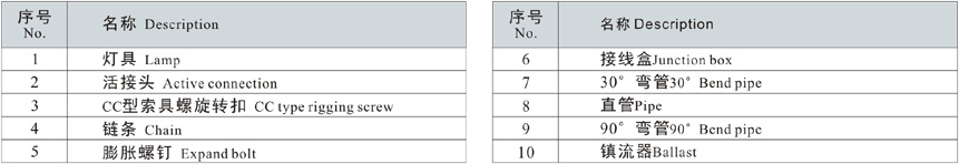 4、可配裝白熾燈、汞燈、金鹵燈。