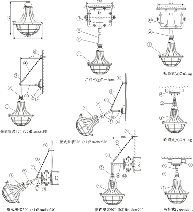 注:所有燈具出廠時均不配光源,如需要請注明。