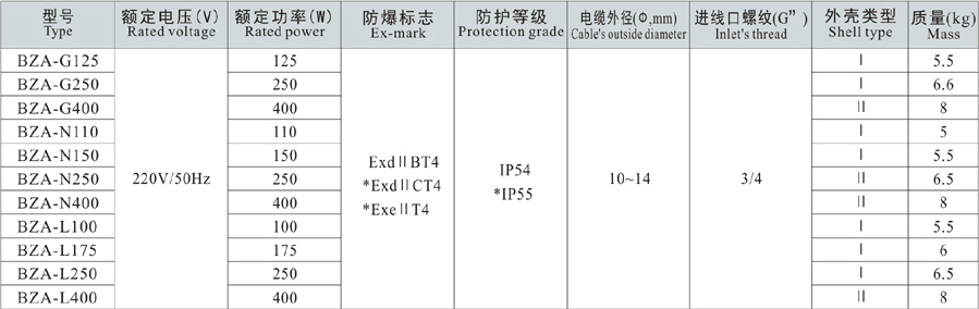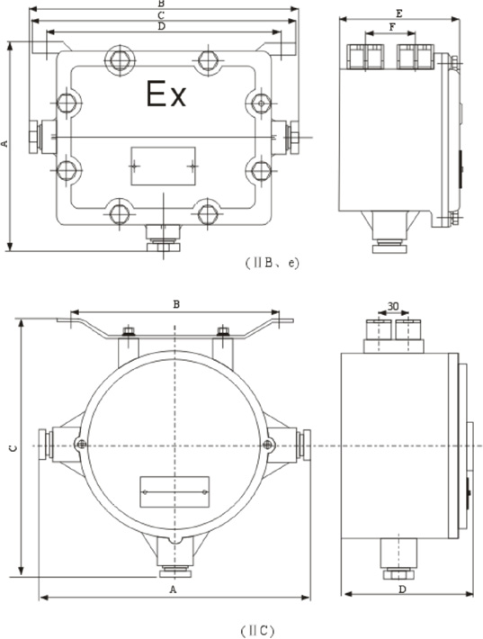 ⅡB類和增安型尺寸見下表(ⅡB Group safety-increased dimension as follow)