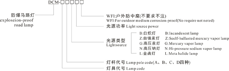 1、The road lamp consists of explsion-proof lamp,lamp pole,base. Inside the base, jumction box or special ballast of road lamp is installed.