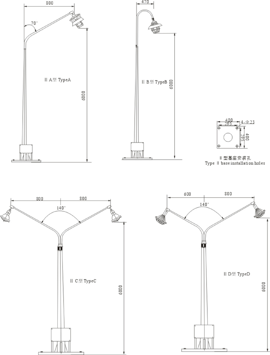 3、01、02、05、06型可根據用戶要求配裝燈傘。