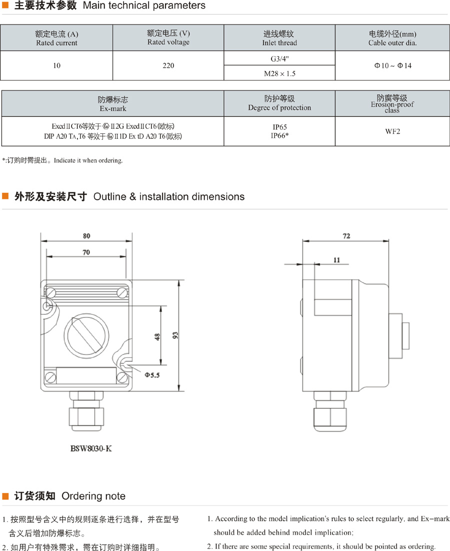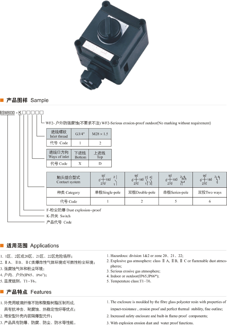 BSW8030-K系列防爆防腐控制開關(照明開關)